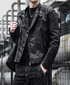 Men’s Youth Motorcycle Leather Jacket — Lapel Stylish Biker Coat