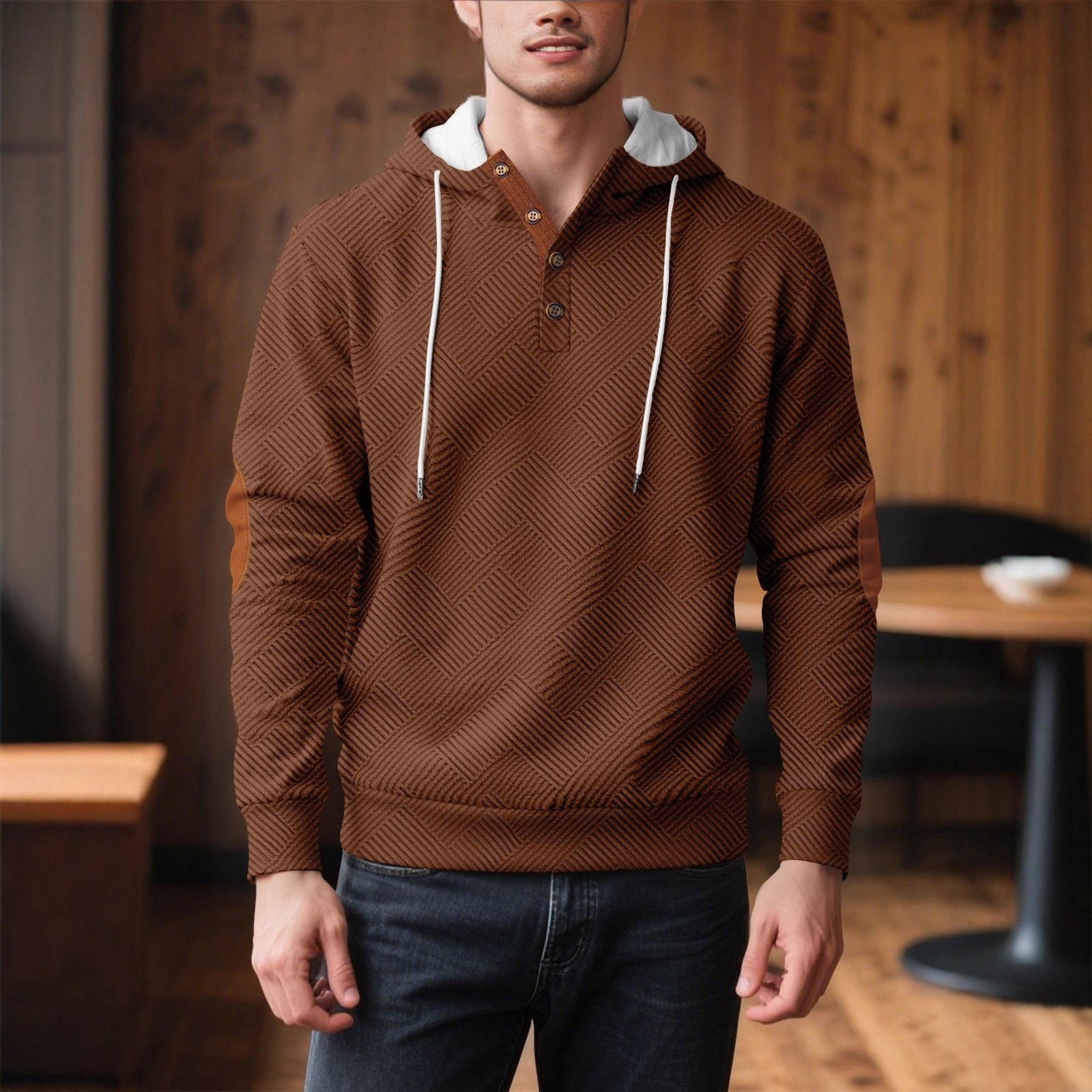 Stay comfortable and stylish with this men’s loose-fit jacquard hoodie, designed for sports, leisure, and everyday wear. Made from a soft polyester fiber fabric, it features a classic pullover design with a hood and long sleeves—perfect for layering in any season.